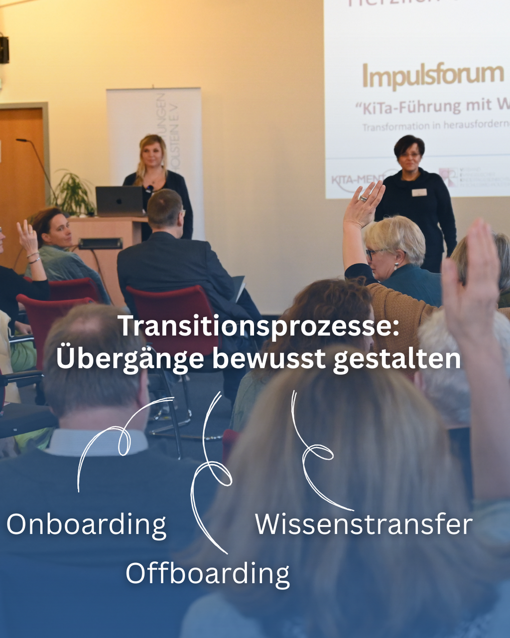 Einen weiteren Schwerpunkt bildeten Transitionsprozesse im Team. Die VEK-Fachberaterinnen Scarlett Vorwerk und Franziska Schubert-Suffrian verdeutlichten, dass Übergänge – ob Onboarding, Offboarding oder Wissenstransfer – entscheidend für Teamkultur, Bindung und Steuerungsfähigkeit sind. Professionell gestaltete Übergänge schaffen Orientierung, sichern Wissen und stärken Teams langfristig.