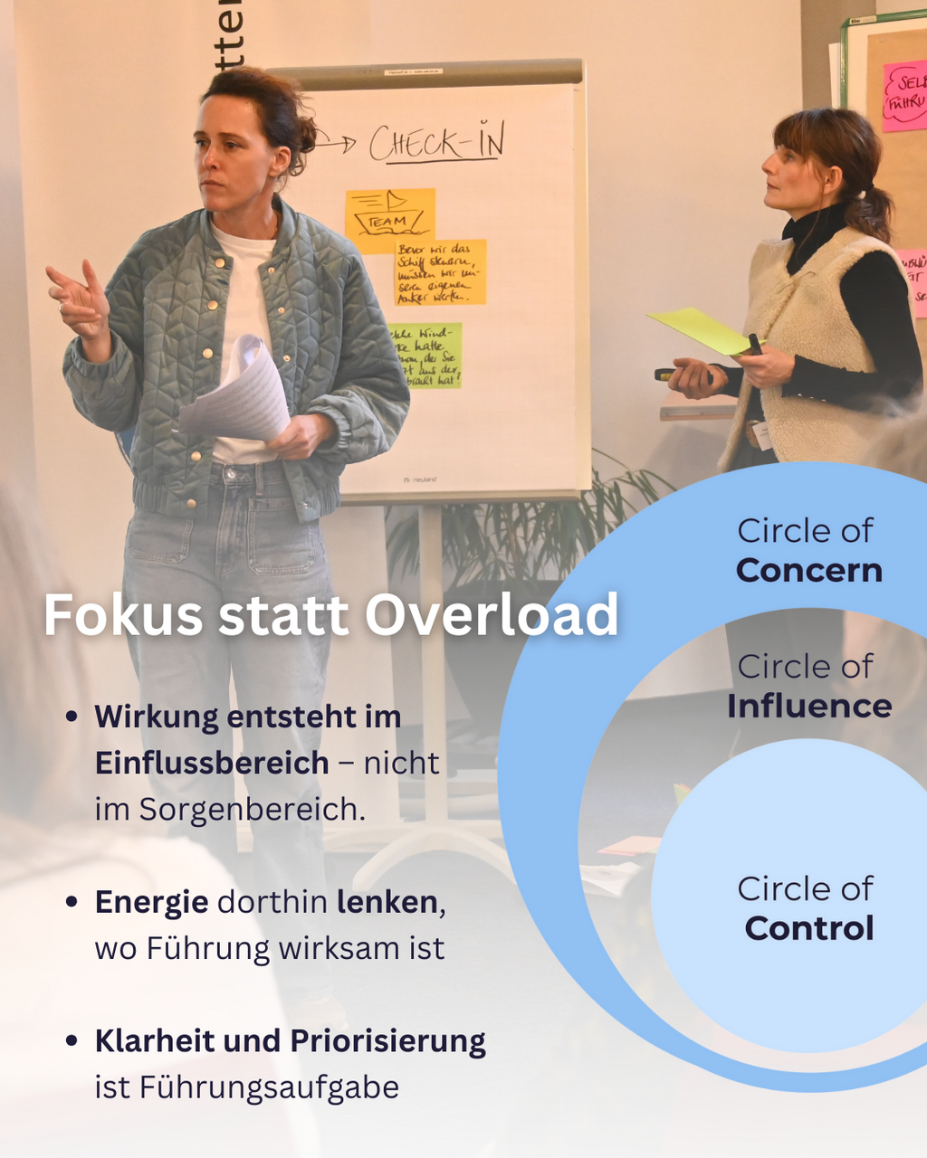 Mit praktischen Werkzeugen wie dem „Circle of Influence“, Atemtechniken und klaren Kommunikationsformaten zeigten sie auf, wie Kita-Führungskräfte ihren Einflussbereich stärken und Teams auch in herausfordernden Momenten stabil führen können. Besonders eindrücklich: Die Verbindung von Selbstführung, Beziehungsführung und Systemführung als tragende Säulen wirksamer Führung.