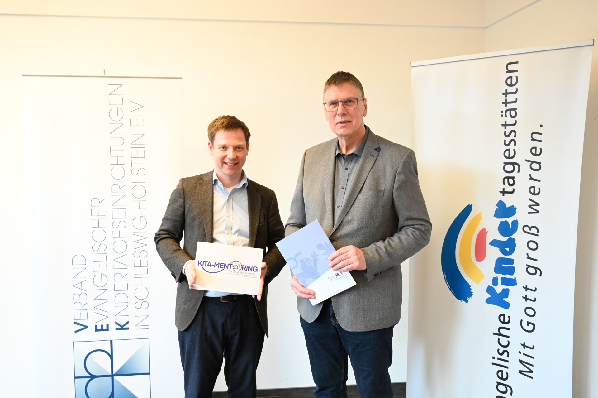 RENDSBURG. Der steigende Fachkräftebedarf macht auch vor Kindertageseinrichtungen nicht Halt und ist vielerorts schon spürbar. Hier kommt gerade den Leitungskräften eine wesentliche Aufgabe bei der Teamentwicklung, Mitarbeitendenbindung und Organisation zu. Um angehende Kita-Leitungen zu unterstützen, hat der Verband Evangelischer Kindertageseinrichtungen in Schleswig-Holstein e.V. (VEK) ein Mentoring-Programm ins Leben gerufen. Das Arbeitsministerium fördert das Projekt mit 256.000 Euro. Den Förderbescheid übergab Staatssekretär Tobias von der Heide heute (21. Dezember) in Rendsburg an den stellvertretenden VEK-Vorsitzenden Christian Kohnke und Geschäftsführer Markus Potten.