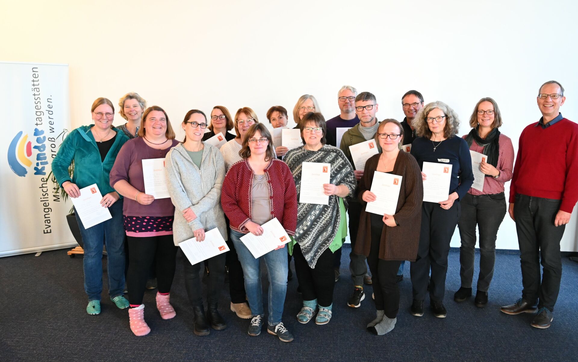 „Das Evangelische Kitaforum verstehen wir als Kristallisationspunkt für spannende Methoden und für Menschen, die in Kita und Kirche zusammen wirken wollen.“, sagt VEK-Geschäftsführer Markus Potten. Der nächste Grundkurs soll Anfang 2025 erneut im Evangelischen Kitaforum stattfinden. Interessierte können sich dafür bereits auf eine Warteliste beim VEK setzen lassen.